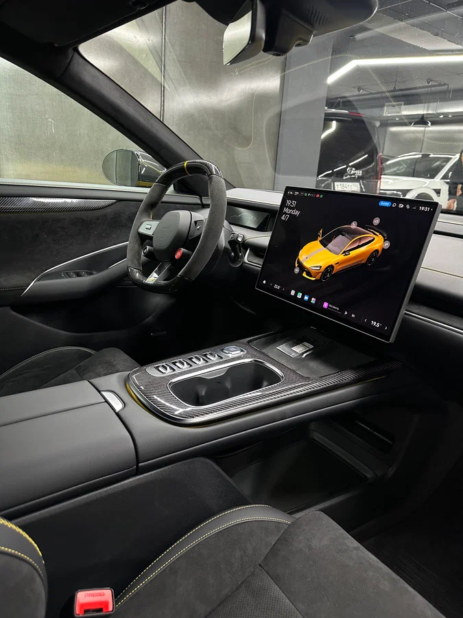 Судя по всему, фотографии электромобиля действительно сделаны в России. На одном из снимков на заднем плане можно увидеть внедорожник с российскими регистрационными номерами. На другом изображении стоят автомобили с логотипом автосалона из Санкт-Петербурга. Электрокар имеет жёлтый цвет кузова, а его салон выполнен в черном с жёлтыми акцентами.
