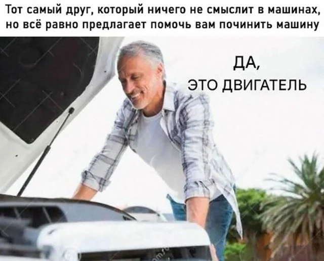 Дело было под 01.00. Друзей ждали злющие вторые половинки (да и мне выразили неудовольствие по телефону). Сам я в ремонте не учавствовал дабы не нарушать идиллию двух братьев выпускн ков Томского Политехнического. И вот осталось залить тосол и м.масло. Ну шаг до победы. Уже реально спать охотА. И тут я тру глаза ибо не верю им! Брательники держат канистру моторки в 4 руки и льют в горловину. На мой вопрос, что "второй" мог бы залить систему охлаждения с целью не терять время! Получил ответ, что всё надо делать внимательно и аккуратно.