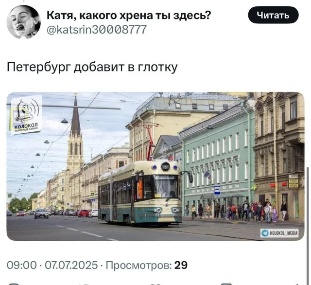 В Красноярске трамваи отличные, подтверждаю. Есть старье еще но их 1-2 штуки и то давно не видел. Троллейбусы чисто новогодние елки на колесах. Все в подсветке, с телевизерами внутри, кондеем и ваще огонь. Как то проехался интереса ради так я реально с открытой челюстью ехал. Да и у нас имеются остановки с кондиционерами) Хохлам просто не показывают дабы у них не возникало "неудобных" вопросов