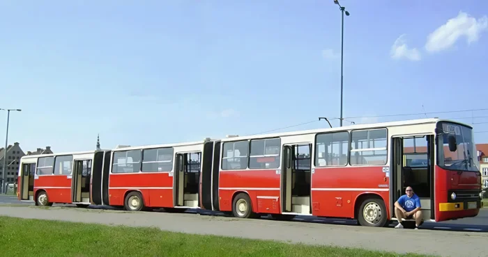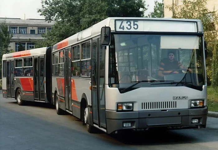 История сочлененных Икарусов началась в 1956 году, когда венгры приобрели лицензию у немецкой компании Kässbohrer. Именно от немцев пришли защитные меха-шторы, которые дали автобусу народное прозвище "гармошка".