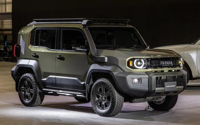 Дизайн новинки выполнен в брутальном стиле, вдохновленном классическими моделями Land Cruiser, включая все еще выпускаемый J70. Однако некоторые отмечают сходство с китайской моделью Chery iCar V27, которая выглядит не менее «крузаковской», чем FJ.