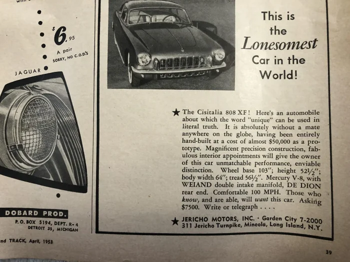 На аукционе Bring a Trailer за 280 000 долларов было продано купе Cisitalia 808XF, построенное в 1953 году. Эта модель чуть было не стала первым полноценным гранд-турером Ford, но вместо этого осталась уникальным прототипом. Автомобиль с 1960 года находился в одной семье.