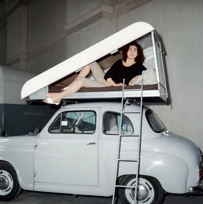 Новое революционное изобретение для кемпинга — палатка на крыше автомобиля Austin A40. 1960 год.