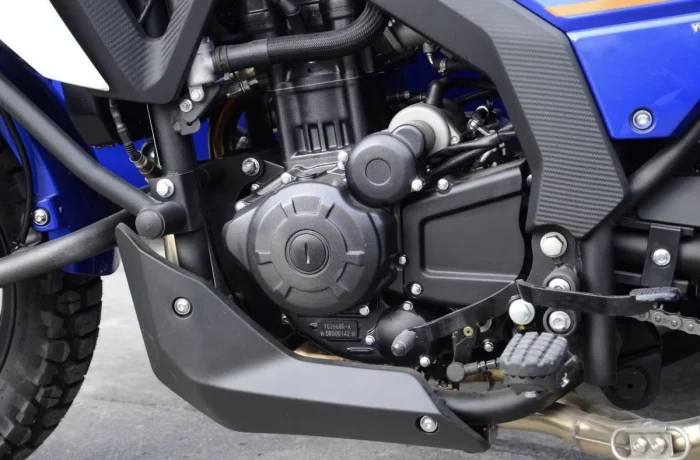 Вместо традиционного оппозитного двигателя установлен одноцилиндровый мотор Zongshen объёмом 446 см³ с заявленной мощностью около 35 л. с.