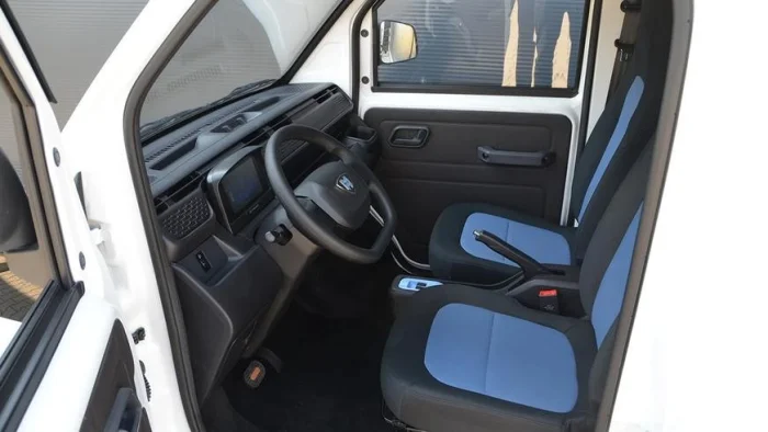 Двухместная кабина сохранила стандартное оснащение, включая цифровую приборную панель, электростеклоподъёмники, центральный замок, камеру заднего вида и Bluetooth. Кондиционер, солнечная панель и фаркоп доступны за доплату.