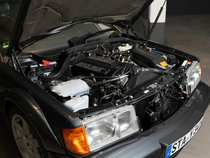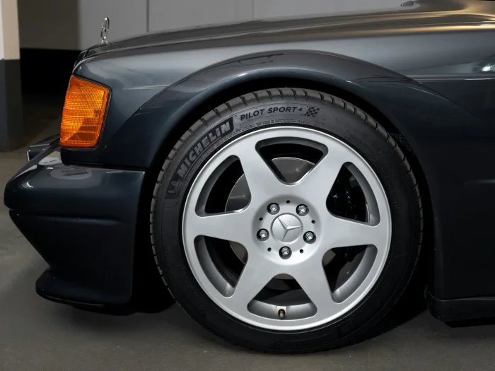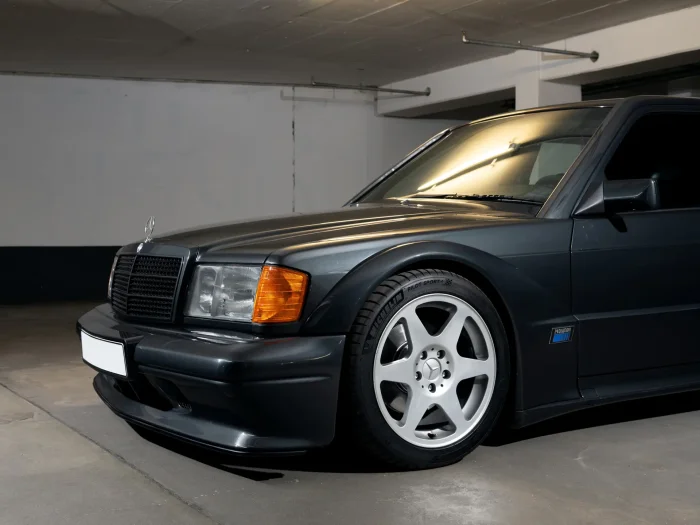 Дорожная версия Mercedes-Benz 190 E с двигателем от британской компании Cosworth дебютировала в 1983 году. Изначально она оснащалась 2,3-литровым мотором мощностью 183 л.с. К моменту появления «второй эволюции» объём двигателя увеличился до 2,5 литра, а отдача возросла до 235 лошадиных сил. Отличительными особенностями этой модификации стали регулируемая подвеска и внушительное антикрыло, которое для своего времени было радикально большим, в сочетании с дополнительными аэродинамическими элементами.