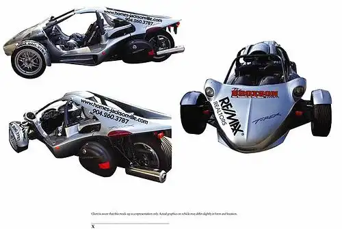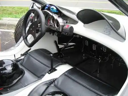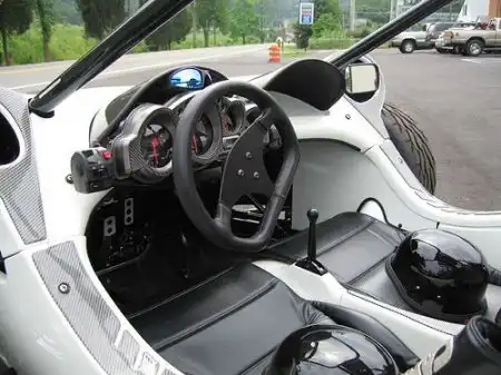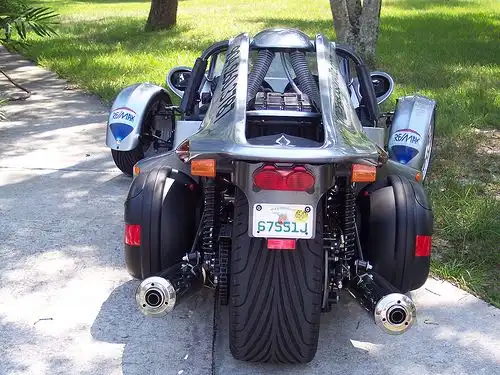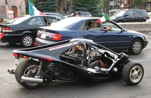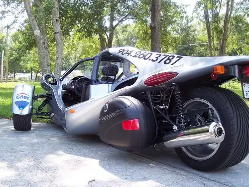 Этот 3-колесный мотоцикл рассчитан на двух пассажиров, сидящих рядом, имеет сиденья как у автомобиля, ремни безопасности, ручную коробку передач, при этом куда более безопасен, чем обычный мотоцикл.