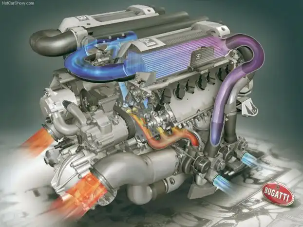 Инженеры Volkswagen ужаснулись, но принялись за работу. Основой новому W16 двигателю послужила V8 от Audi. Для остроты в двигатель добавили 4 турбины (это не опечатка их там действительно 4), я думаю, не стоит объяснять на какую мощь способен подобный агрегат, однако возник вопрос о том, как охладить такого зверя. Специалисты компании были вынуждены прибегнуть к нестандартному решению и поставили 10 радиаторов охлаждения.