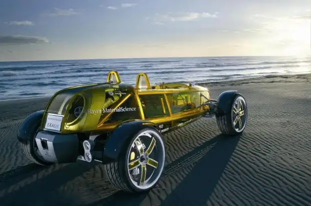Машина словно сделана из стекла, но на самом деле это углепластик. Такую красоту сделали в германском химическом концернне Bayer MaterialScience AG.