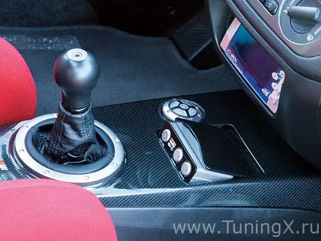 Модификация электроники: контроллер наддува HKS EVC на центральной консоли и дополнительный компьютер управления топливом, изменяющий сигнал MAP, что позволяет регулировать подачу топлива по программируемым пользователям восьми режимам при возрастании оборотов на каждые 500 об/мин. Еще на этом автомобиле установлен таймер Blitz и полный комплект приборов Blitz AC.