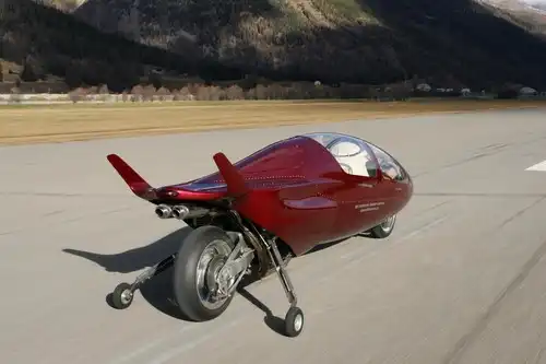 Инженеры из международной компании Acabion явили свету новейшую разработку, над которой они трудились больше трех лет, израсходовав при этом несколько миллионов долларов. Необычный аппарат, конструктивно больше напоминающий мотоцикл, похож то ли на ракету, то ли на пулю. Дизайн разрабатывали в итальянском Маранелло, техническую часть в Штутгарте, сборку осуществили в швейцарской Люцерне.