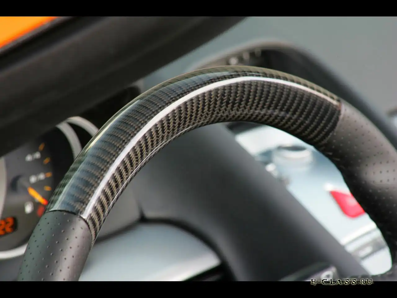 Дизайнеры TechArt разработали по заказу аэродинамически эффективные компоненты кузова, изготовленные из прочного углеродного волокна, которые служат визуальным контрастом специальной окраске в цвет оранжевый металлик.Новый воздуховод в верхней части передней панели и губа спойлера в нижней придают передней части кузова этого двухместного автомобиля еще более динамичный внешний вид. Низкий передний спойлер уменьшает подъем на передней оси на высокой скорости и таким образом оптимизирует продольную устойчивость.TechArt также разработал крыло, состоящее из трех частей, которое служит аэродинамическим аналогом в задней части автомобиля. Центральная часть разделительной кромки тянется вдоль заднего крыла и в сочетании с закрепленными слева и справа краями спойлера продуцирует дополнительную прижимную силу на задней оси.В то время как подвеска и шины остались без изменений, периферия 5.7-литрового двигателя V10 была усовершенствована благодаря высокоэффективной выпускной системе TechArt из нержавеющей стали и модифицированной системе впуска. Обе системы не только улучшают звучание двигателя, выходящее из двух серийных выхлопных труб, модификации также увеличивают максимальную выходную мощность с 612 л.с. примерно до 635 л.с.Еще одна область Carrera GT, подвергнувшаяся усовершенствованиям, расположена в кокпите. TechArt разработал по заказу салон с эргономичным спортивным рулевым управлением с кожаной/углепластиковой отделкой и рычагом переключения, изготовленным из прочного углеродистого волокна. Заказы на более эксклюзивные и яркие полностью кожаные салоны выполняет ателье по салонам TechArt.