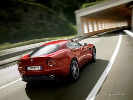 Было бы преступлением не отметить классические пропорции Alfa Romeo 8C Competizione (как следствие компоновки). Бесконечный капот с ярким штрихом, напоминающим обводы болидов Формулы-1, короткая мускулистая корма и рельефные бока с чарующими изгибами несомненно привлекут внимание всех без исключения окружающих. Передние и задние фары порождают ассоциации со многими классическими итальянскими автомобилями 60-70-ых годов.Alfa Romeo 8C Competizione построен на платформе Maserati Coupe, что в современном автомобилестроении совсем не зазорно, а в какой то степени даже должно льстить владельцам. Итак, в основе автомобиля лежит пространственная алюминиевая рама, которая обеспечивает низкий вес и жесткость кузову. Некоторые панели кузова автомобиля выполнены из композитного материала (углепластик). Сердце автомобиля – V-образная восьмерка с углом развала 90 градусов и объемом 4.7л. Было бы мало отметить лишь сухие цифры его мощности, которая составляет 450 л.с. при 7000об/мин и величину крутящего момента в 470Нм. Нужно сказать, что инженеры Alfa Romeo настроили двигатель так, чтобы он отдавал большую часть своей тяги уже почти на холостых оборотах. Это позволит хозяевам не только реализовывать свои навыки активного вождения, но и с комфортом дефилировать по тесным улочкам курортных городов.