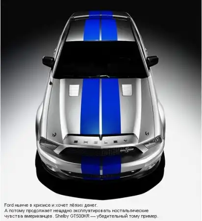 Почему избранные? Потому что Ford Shelby GT500KR образца 2008 года будет собрано всего 1000 штук. Желающих обладать этим автомобилем наверняка больше. Интересно, что в названии сохранены символы KR, а значит — перед нами новый король дорог.