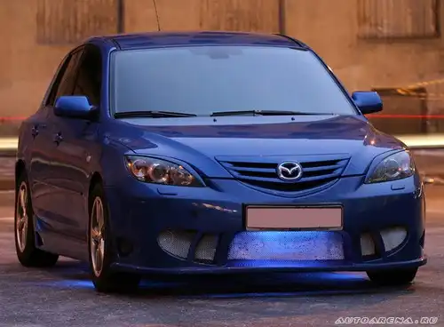 Правильная формула настоящего тюнинг-кара много пластика и в меру металла. Металл в Mazda диски AEZ и скромный, но выразительный наконечник глушителя. Если позволить себе немного лирики, то металлические нотки есть в звуке обновленного выпуска и есть нечто стальное в новом выражении «глаз» автомобиля, форма которых изменилась из-за пластиковых ресничек.