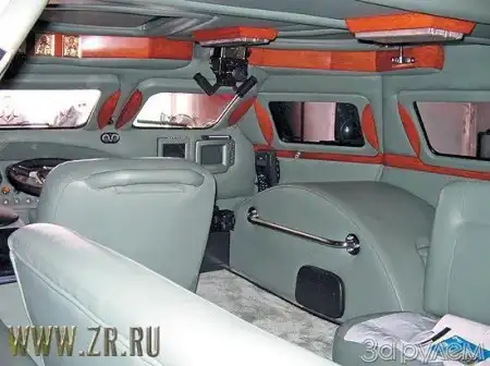 Тут есть все, о чем только можно мечтать: система спутниковой связи, система пожаротушения, видео- и аудиооборудование, эхолот, прибор ночного видения, GPRS-навигация, бар, холодильник, перископ и прочая и прочая. О таких мелочах, как кондиционер, и говорить не стоит.