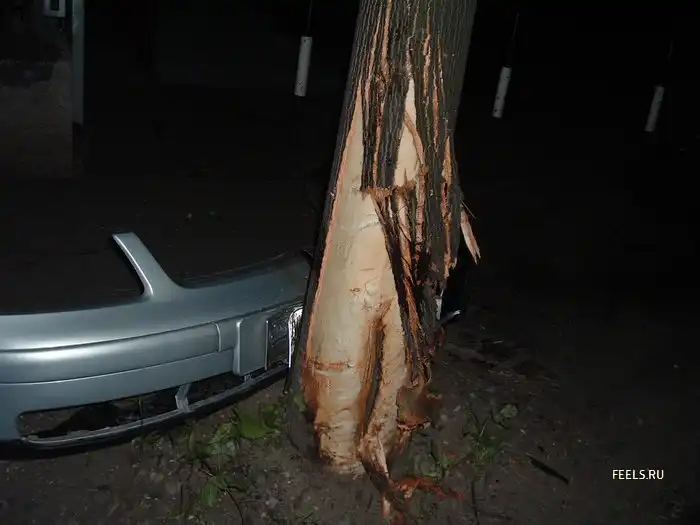 Жалко машинку, в продолжении результат столкновения с деревом...