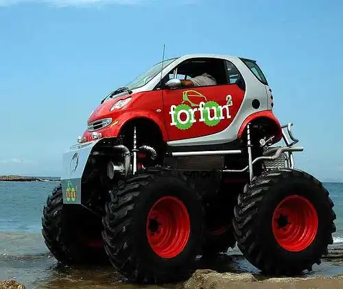 Большинство же совершенно бесполезных и глупых выдумок принадлежит отдельным любителям техники и другим бездельникам. В основном эти механики шли простым путем и растягивали автомобили, делая из них лимузины, или водружали Smart на колеса от трактора.