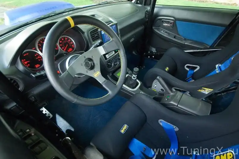 манометр наддува AutoMeter Cobalt, датчик температуры выхлопных газов AutoMeter Cobalt, датчик давления масла AutoMeter Cobalt, каркас безопасности Autometer, сидения OMP WRC, 6-точечные ремни безопасности OMP DA 501, руль OMP WRC Medium, алюминиевые стойки сидений OMP каркас безопасности одобрен SCCA, рукоять переключения передач WORX Tuning ERGO