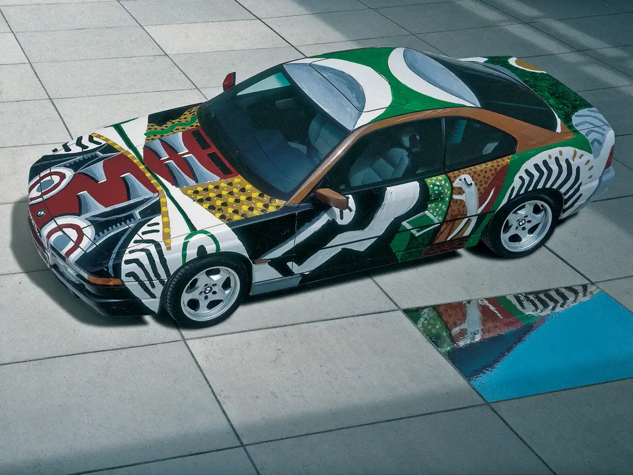 380-сильный BMW 850 CSi, расписанный Девидом Хокни (David Hockney), как бы вывернут наизнанку, он «прозрачен». На капоте изображён стилизованный впускной коллектор двигателя, «сквозь» дверь виден силуэт водителя и его собаки.