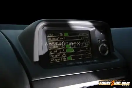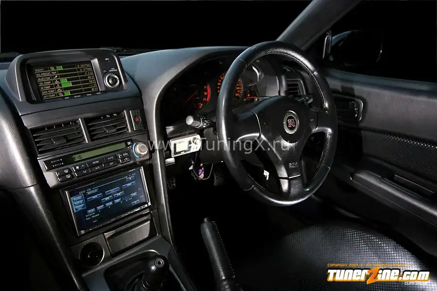Демультипликатор Field, датчик динамической нагрузки Nismo, датчики работы двигателя Nismo, спидометр и тахометр Nismo, DVD-проигрыватель Kenwood со встроенным в панель приборов экраном, колонки и усилители Diamond.