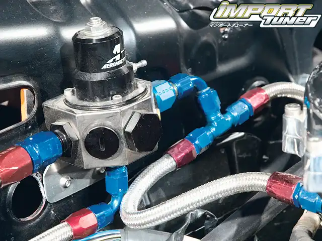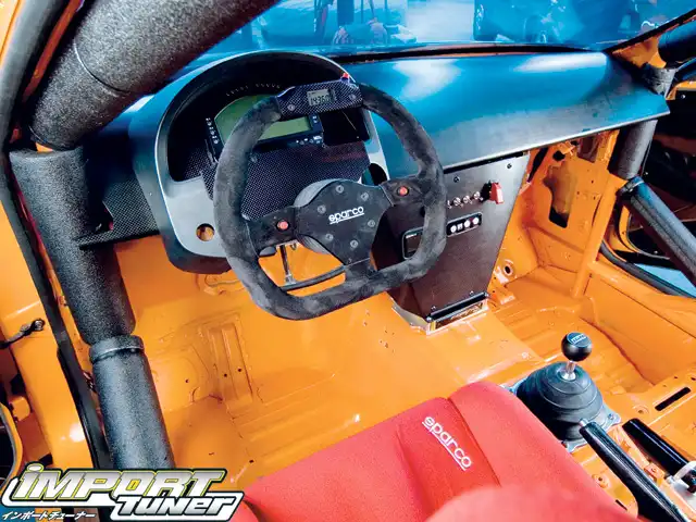 HKS F-Con, настроенный XS Engineering (Хантингтон-Бич, Калифорния), тонко управляет драгоценным двигателем, созданным K&N. Сначала VQ35 было отправлен на сборку во всемирно известную компанию Cosworth Engineering. Cosworth построили уже множество автомобилей для Формулы-1, WRC, Champ Car, поэтому с этим двигателем они справились легко и всего за три дня.