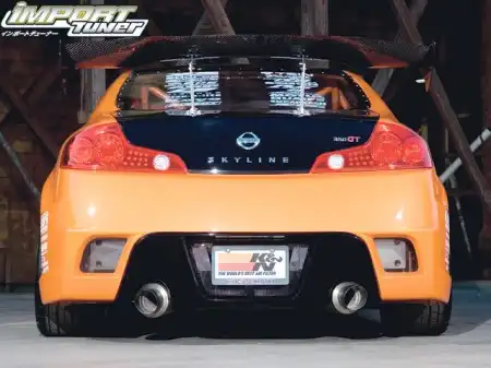 Название K&N Engineering давно стало ассоциироваться с популярными воздушными фильтрами, масляными фильтрами и системами подачи холодного воздуха. Однако после дебюта этого тюнингованного Infiniti G35 2003 года поклонники автоспорта будут ассоциировать K&N с гоночными автомобилями, тонким конструкторским мышлением и будоражащей скоростью. Этот монстр, созданный K&N для "time attack", являет собой удивительно скрупулезно спроектированный механизм. Машина была построена специально для трека Buttonwillow Raceway, где ежегодно проводятся соревнования Primedia Time Attack.