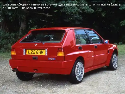 В том же 1991-м появляется Lancia Delta HF Integrale Evoluzione I. И, несмотря на якобы эволюционную суть машины, она довольно серьёзно отличалась от предыдущих Delta. Колея передних и задних колёс была расширена для улучшения управляемости, стали шире и крылья, что придало Evoluzione I ещё более шикарный облик — эти «бёдра» до сих пор смотрятся очень впечатляюще. А изменённые бампер, капот и решётка радиатора позволили улучшить охлаждение мотора.