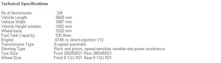 The V12 engine is made from aluminium. It uses four valves per cylinder and twin camshafts per cylinder bank, and features fully variable valve-lift control and variable valve timing. This most advanced of V12 engines also employs direct fuel injection, to improve performance and fuel efficiency. At 1000 rpm, the engine is already producing just over 75 per cent of its peak torque figure.