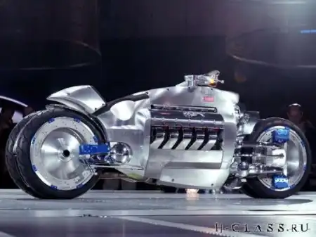 Концепт Dodge Tomahawk, оснащенный двигателем Viper, разбивает все стереотипы традиционного мышления относительно личного транспортного средства. Полноприводный одноместный мотоцикл обладает гладким кузовом, в котором дизайн в стиле ар деко сочетается с экстремальными технологиям