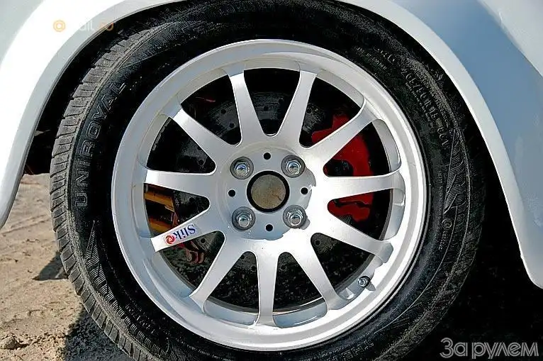 На этом фоне изменения тормозной системы выглядят обыденно: диски «Брембо» по кругу с доработанными суппортами ВАЗ-2112, в которых разместились колодки «Лукас Спорт». Гидравлический ручник блокирует передние колеса (видимо, чтобы не возникало желания срывать с его помощью заднюю ось в занос). А вот от распределителя тормозных сил отказались зря – задние механизмы «хватают» раньше передних.