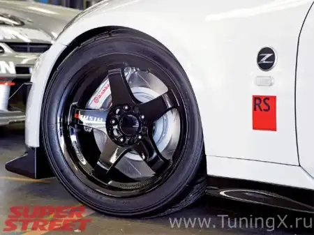 Когда речь идет о компании с такой репутацией, как у Nismo, ни одна мелочь не останется без внимания. Для максимальной эффективности на трассе стандартная подвеска была "нашпигована" койловерами R-tune, более толстыми стабилизаторами и уретановыми втулками. Колеса LM GT4, более широкие, чем те, что обычно ставят на Fairlady на заводе, одеты в резину Advan A048, самую липучую из всех липучих резин. Ну и, конечно, стандартные тормоза Brembo не обошлись без переделок: теперь здесь стоят перфорированные диски, задача которых – предотвращать "увядание" тормозов путем улучшения процесса их охлаждения.