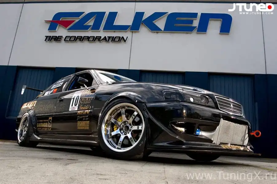 Chaser, если кто не знал – невероятно популярный заднеприводный седан, которым Toyota осчастливила Японию. В экстремальных условиях его даже можно относительно легко контролировать, несмотря на внушительные размеры и не менее внушительную массу. Достаточно долгое время его выбирали для своих экзерсисов пилоты D1. Благодаря таким компаниям, как Falken, эта машина еще долго останется легендой.