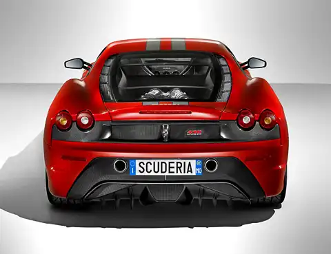 Проще всего опознать Scuderia именно сзади. На углепластиковой панели с решётками для вентиляции форсированного мотора красуется шильдик 430 Scuderia, а патрубки выпускной системы перекочевали чуть повыше и теперь обрамляют номерной знак. Главное — чтобы он не расплавился.