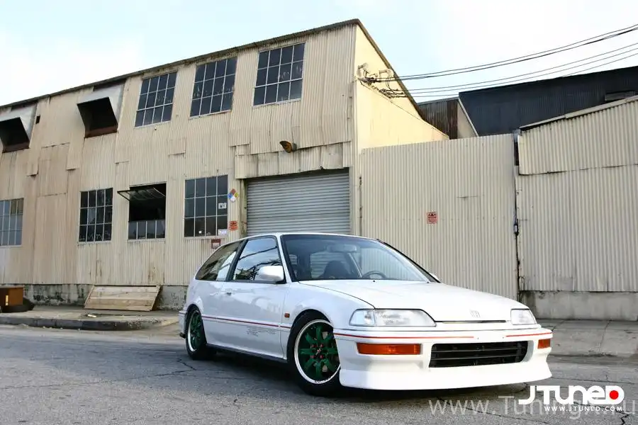 В начале своей жизни Civic носил красный костюм той формы, которую носили все его сородичи, выпущенные для американского рынка. А потом его перекрасили в фирменный цвет Honda Frost White, а внешность значительно изменилась под влиянием японских элементов экстерьера: переднего и заднего бамперов, оптики, порогов, заднего спойлера и так далее. Передний бампер дополнен "губой" от Charge Speed, что придает машине совсем другую осанку, а боковые зеркала заднего вида заменены цельными аналогами Vision Type-MC.