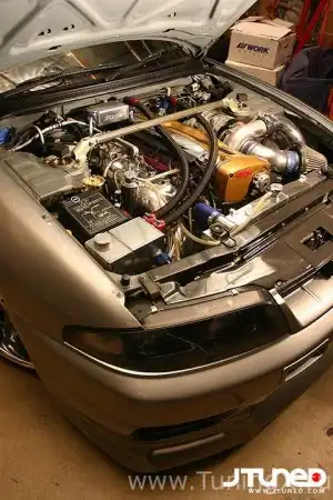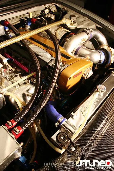 Взяв один из самых почитаемых двигателей за историю человечества, в SP, тем не менее, полностью вытащили его из-под капота, разобрали и увеличили его объем до 2.8 литров при помощи строкер-кита HKS. Спортивные валы HKS 280, топливная рейка, впуск и двойные топливные насосы – с помощью всего этого из двигателя выжимается вся возможная мощность. В сердце всей системы расположена шарикоподшипниковая турбина T51 SPL, достаточно большая для того, чтобы машина смогла развить мощность с четырехзначным значением. Порты головки блока были доработаны с целью пропуска большего количества воздуха в двигатель, а сама она дополнилась коллектором Greddy. 4-рядный интеркулер, тоже Greddy, охлаждает температуру входящего воздуха, а блоу-офф Type S высвобождает воздух, оставшийся неиспользованным. Отполированный алюминиевый радиатор Koyo заменил не совсем подходящий для новых целей стандартный агрегат. Он дополнен двумя электронными вентиляторами FAL. HKS V-Con V Pro контролирует все процессы, касающиеся зажигания и топливно-воздушной смеси. Этот элемент постоянно используется в SP как самостоятельная система. На диностенде топливо полилось в двигатель, двигатель провернулся, машина дернулась, как дикий мустанг, и ролики в итоге остановились на завораживающей цифре – 975 л.с. на колесах. Не забывайте, однако, о том, что это стрит-кар, и в нем полностью сохранены интерьер и аудио-система.