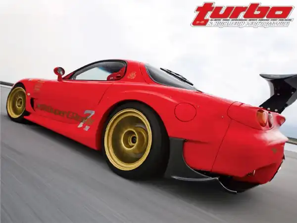 Благодаря передним крыльям, передняя часть автомобиля расширилась более чем на два сантиметра. Деталь, повторяющая стиль Porsche, - выпуклости на передних крыльях, идущие от фар. Вентилируемый капот также способствует дополнительному охлаждению внутренностей. Взгляните на этот Super GReddy 7 спереди и вы не сможете не согласиться, что этот ракурс самый лучший. Бока машины украшают "юбки", начинающиеся у отверстий для выпуска воздуха в передних крыльях и плавно переходящие в задние фендера.