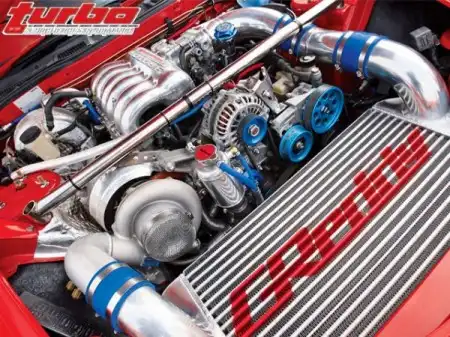Основные изменения коснулись носовой части кузова. Эти круглые "прожектора" вам что-то неуловимо напоминают? Ничего удивительного, ведь они от Porsche Carrera (997). Только за счет избавления от старомодной убирающейся оптики вес в передней части автомобиля уже был существенно снижен. Контур переднего бампера стал обтекаемым, что способствует аэродинамике на высоких скоростях, а огромный воздухозаборник обеспечивает свежим воздухом расположенные V-образно радиатор и интеркулер. Два масляных радиатора от ARC поддерживают необходимую температуру моторного масла – как и должно быть в любой глубоко тюнингованной машине.