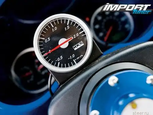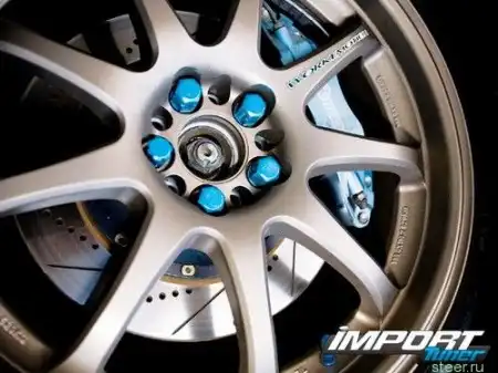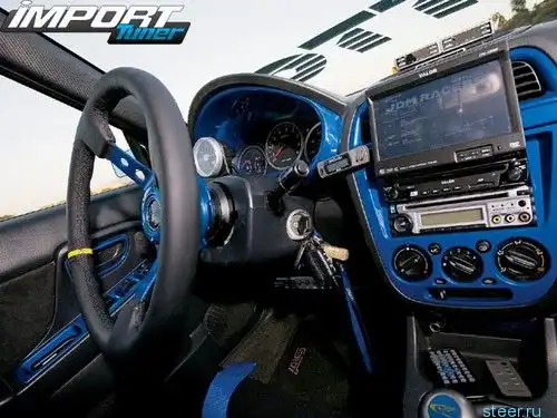 Итак, глава четвертая. Дуэньясу так полюбилась платформа WRX, что он купил косметически обновленную версию 2004 года ярко-синего цвета. Новая машина тут же получила передний бампер и боковые юбки от Do-Luck. Задняя часть кузова осталась практически родная, добавился лишь карбоновый диффузор от APR Performance. Завершающими штрихами внешнего вида машины стали карбоновые дверные зеркала, карбоновый держатель номерного знака от APR Performance и ксеноновые фары Ignited. Не забывая о своем хроническом «везении» в автомобильных делах, Дуэньяс предусмотрительно покрыл передний бампер специальной пленкой от Star Shield Armor, защищающей от царапин и сколов.