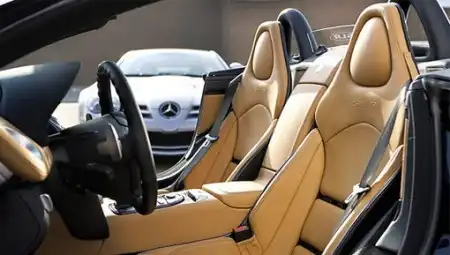 Конструкторам родстера удалось создать такую мягкую крышу, что только внимательный взгляд отличит ее от жесткой верхней части купе. Специально созданный материал отличается при всей своей эластичности столь высоким сопротивлением аэродинамическим нагрузкам на поистине авиационных скоростях, что без проблем выдерживает и 322 км/ч. Полуавтоматический механизм убирает верх в емкость позади сидений за десять секунд. Причем, обрушивающийся на автомобиль воздушный поток укрощен аэродинамиками Mercedes настолько, что, как утверждают в Штутгарте, шум не мешает водителю и пассажиру без помех беседовать и на скорости 200 км /ч.