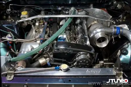 Конструированием SR20DET занималась компания Toda. Кто еще вам сделает 2,2-литровый SR20? Дополнительные 0,2 литра были достигнуты путем замены стоковых распредвалов, шатунов, поршней и клапанных пружин на соответствующие компоненты от Toda. От заводской турбины отказались в пользу турбочарджера GReddy TD-06, который закрепили на коллекторе HKS.