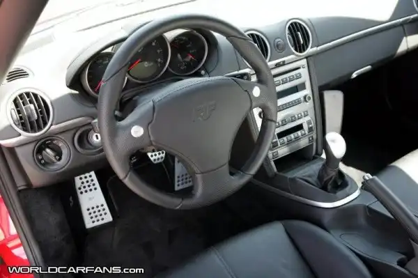 RUF 3400 K Cayman- юбилейный автомобиль, выпущенный по случаю 25-и летия знаменитой компании RUF, специализирующейся на производстве автомобилей под собственной маркой на базе моделей Porsche, да да.. именно собственной маркой! RUF доводит до ума каждую деталь автомобиля и на выходе имеет бескомпромисные спорткары, впечатляющие своими показателями автолюбителей всего мира. Среднемоторный Cayman инженеры оснастили механическим нагнетателем, усовершенствовали выпускную систему, тормозную систему, подвеску, аэродинамику автомобиля, доработали внутреннее убранство. Результатом всех переделок стали: разгон до 100 км/ч за 4.4 сек.( до 200 км/ч- за 14.8 сек.), максимальная скорость - 315 км/ч и отличная управляемость. Стоит этот снаряд в Германии всего 75.000 евро.