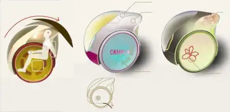 Дизайнер Пэтти Юань (Patty Yuan), китаянка, выросшая и обучавшаяся в США. В 2006 году она завоевала престижную дизайнерскую премию red dot в категории «Транспорт» со своим двухместным электромобилем Camper Lotus. «Лотус» — это «всего одна ось, пара кресел, электромоторы и корпус-хамелеон.» Длина машинки составляет 1,3 метра, ширина — 1,4, а высота — 1,55 метра. Доступ в неё открывает лобовое стекло, соскальзывающее вверх и назад. Внутри — пара кресел, установленных бок о бок. За их спинками расположен крохотный багажник на пару кейсов или сумок с продуктами.