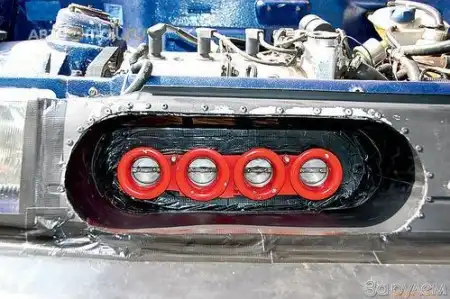 Особое внимание, как водится, уделили головке цилиндров. Распредвалы, командующие «фордовскими» клапанами (на впуске 32-миллиметровые, на выпуске – 28) обеспечивают им подъем на 12 мм. Пружины – проверенной марки «Шрик». Четырехдроссельный впуск тоже именитый, но уже работы российского специалиста Брагина. Достаточно эффективный бензонасос позаимствовали у одной из моделей «Мерседеса», форсунки повышенной производительности фирмы «Бош».