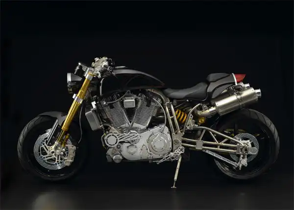 «Титановый еретик», как и все мотоциклы ECOSSE Moto Works, собирается исключительно заботливыми руками мастеров компании до последнего винтика. Особое внимание уделяется двигателю (объем 2,150 куб. см).
