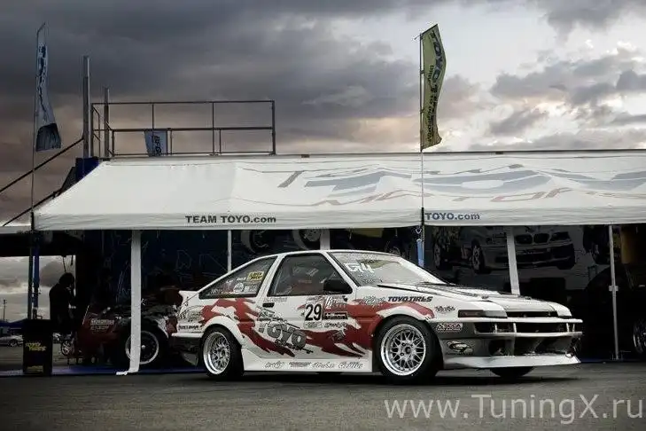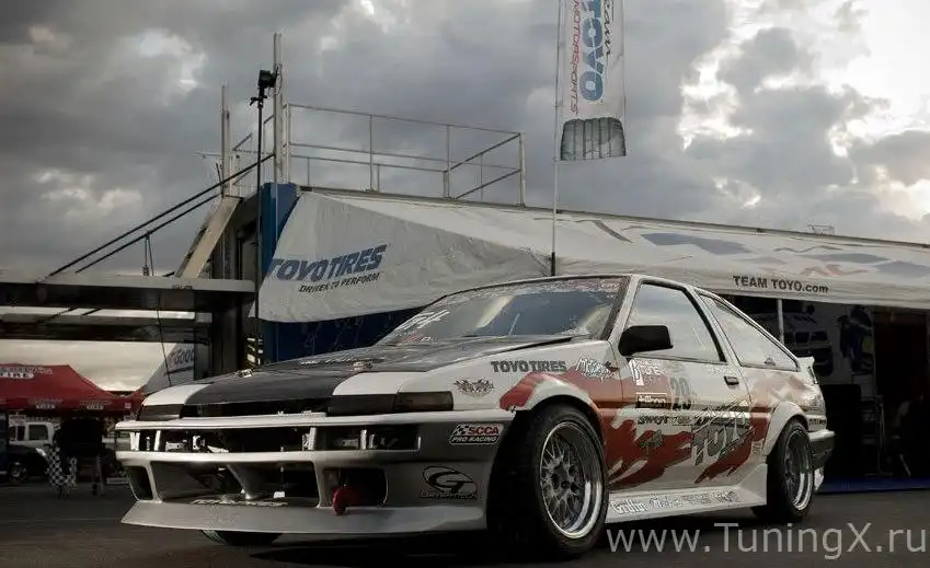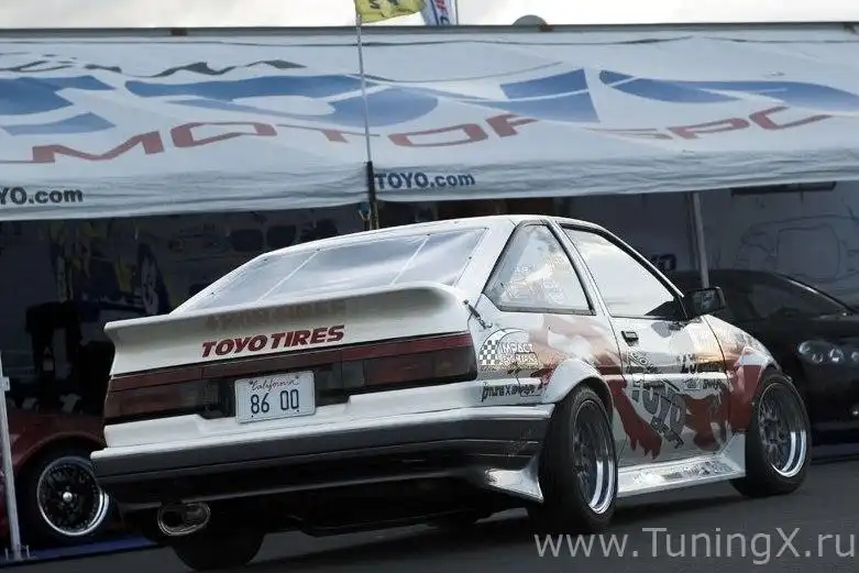 Хотя эта почтенная классика кажется совершенно ненужной сегодня, есть причины, по которым владельцами этих красавчиков хотят стать многие. AE86 был прекрасным соперником в дрифтинге, обладая легким шасси, задним приводом и соблазнительными линиями кузова. Этот хэтчбек может похвастаться аэродинамическим китом JDM, багажником FRP, капотом из углеродного волокна и габаритным огнями JDM. Уменьшение массы очень важно для состязаний на треке, и FRP помогает в этом. Он недорогой, легкозаменяемый и почти невесомый. Свой вклад в образ этого легкого красавца вносят с трудом добытые диски Dori Dori Mesh с шинами Toyo Proxes, самая лучшая комбинация для неразрывного сцепления с дорогой.