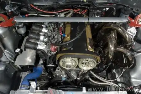Двигатель Formula Atlantic 4A-GE от TRD был полностью модернизирован с использованием самых лучших деталей, которые только представлены на рынке. Позорить этот божественный агрегат было бы по меньшей мере глупо, поэтому Мартин Харьяни внес только небольшие изменения в этот двигатель стоимостью 45000$. В передней части доминируют детали от Toda, представленные распределительным валом, эксцентриками и пружинами клапанов. Кроме того, между головкой цилиндров и крышкой блока цилиндров расположена прокладка головки цилиндров от TRD. Сзади имеются модифицированные поршни, шатуны, коленвал и масляный насос. Коробка передач TRD оказалась наиболее эффективной для этого мощного зверя. Настоящая мощь 4A-GE обнаруживается при установке сцепления Tilton, двойного дифференциала повышенного трения Kaaz и карданного вала из углеродного волокна.