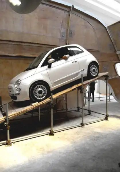 Для начала мы хотели бы показать вам экспозицию «лучшего автомобиля 2008 года» по версии Европы — стенд нового Fiat 500, о котором мы уже писали две недели тому назад. Специально для автосалона в Болонье была сооружена гигантская конструкция, модель Fiat 500 в пропорции 5:1 к оригинальному автомобилю.