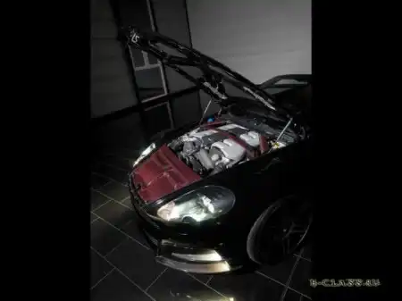 Вот их размеры: на передней оси установлены диски 9x20 с соответствующими высокоэффективными шинами 255/35/20, на задней оси – диски 10.5x20 с шинами 285/30/20. Кроме того, боковые обвесы улучшают аэродинамику и внешний вид автомобиля. Еще одной типичной деталью являются интегрированные карбоновые расширители колесных арок с расположенными за ними воздухозаборниками. К общему дизайну задней части кузова относится задний обвес с углепластиковым диффузором, он действительно производит абсолютно новое впечатление, и, чтобы сделать его еще немного более спортивным, к заднему багажнику добавлен спойлер, который поддерживает динамическое контактное давление. Хромированными деталями являются накладки на фары. Абсолютно новыми являются воздуховыпускные отверстия из анодированного алюминия на капоте двигателя и легкие литые диски. Новой является и подвеска со спортивными рессорами, которая уменьшает дорожный просвет на 25 мм. Загляните в салон, и вы увидите уникальное сочетание древесины клена, углепластика и алькантары.