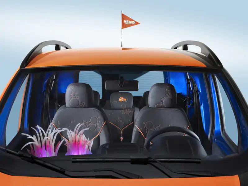 Помимо роскошной боевой раскраски, полностью повторяющей знаменитую рыбку, Citroen Nemo восхищает своим салоном. В принципе, ничего необычного в нём нет: салон как салон. Современный, удобный, функциональный. Но главное не это. Синие стойки и потолок, вышитые пузырьки воздуха на обивке, светящиеся водоросли на передней панели и «плавающие» среди них друзья славной рыбки — вот в чём прелесть этой машинки. Отцам семейства категорически не рекомендуется водить своих чад на выставку в Болонье. В противном случае придётся клятвенно пообещать драгоценным детишкам непременно купить такую «мафыну», как только она появится в магазине.